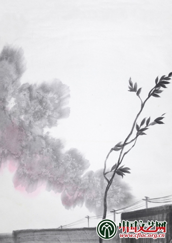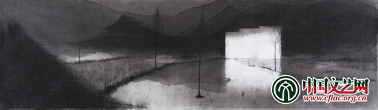 沈勤黑水墨-村138x41cm 2013
