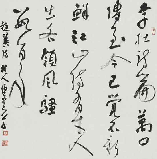 徜徉在草书的天马行空里多年后,农恒云又“反弹琵琶”,撇开行草书体,转而研读秦汉,“傍通二篆,俯贯八分”,反复临习《散氏盘》《钟鼎文》《张迁碑》《开通褒斜道》《石门颂》等篆隶书经典,来补壮其草书创作中点线的婉通、圆润、厚重、韧劲、雄浑、朴茂之质感。