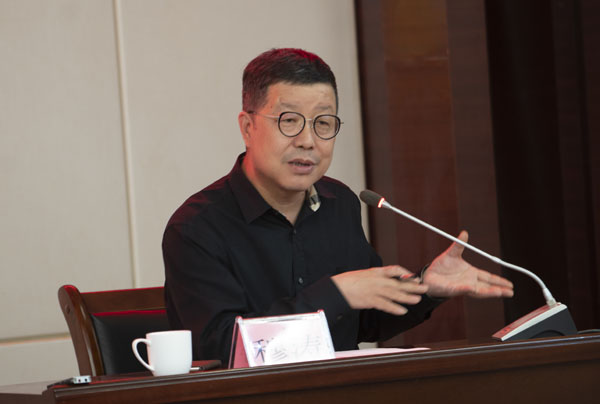 图为著名评论家、中国作协书画院秘书长张瑞田为崇左市作家学员文学讲座