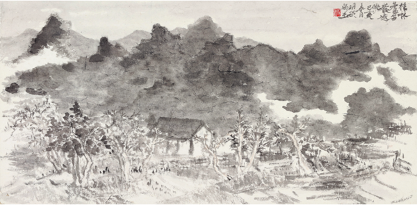 明瓒 《桂林芦笛岩远眺》 35cm×70cm