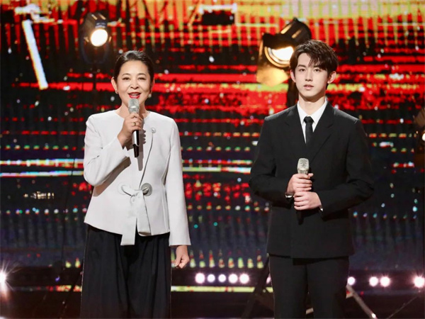 11月4日,第14届中国金鹰电视艺术节开幕式暨文艺晚会在湖南省长沙市举行。图为倪萍、郭俊辰讲述《金色时光》。