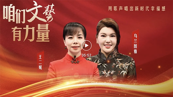 中国文艺志愿者协会理事、青年歌手乌兰图雅,中国音乐家协会理事、青年歌手王二妮做客《咱们文艺有力量》第二场直播访谈,畅谈新时代文艺创作和发展。