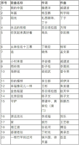 2019年度20首优秀歌曲