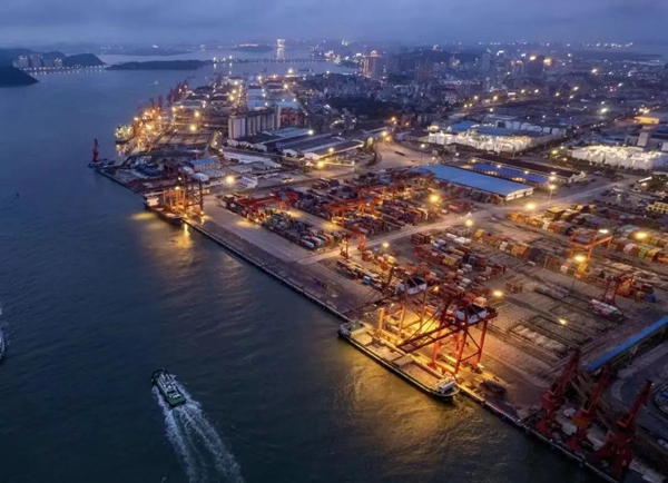 海港的货轮刚卸了一船