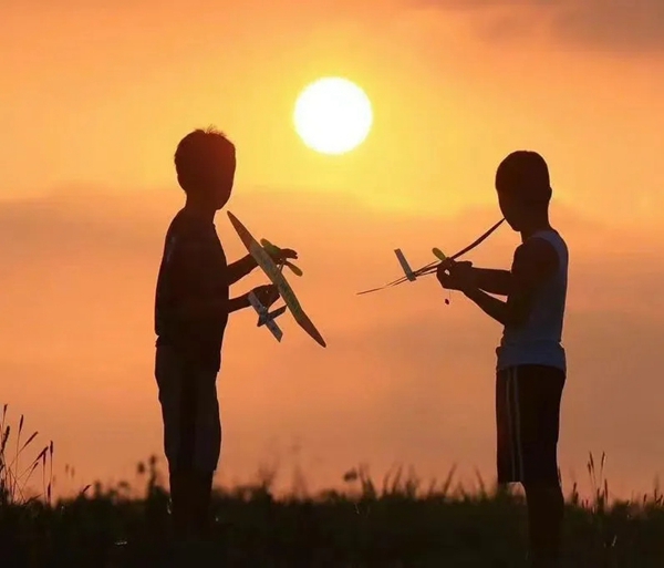 孩子们在村口追逐玩耍