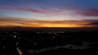 灯火阑珊映照着对岸