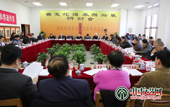 中国书画家联谊会寿文化艺术委员会主任赵玉杰在研讨会上作了主题发言,他表示,弘扬寿文化,首先要大力倡导中华民族优秀传统“孝道”文化,既而努力促进家庭和睦、社会和谐;其次要大力创作寿文化精品,努力促进中华民族文化事业的发展繁荣;第三要大力开发群众喜闻乐见的寿文化产品,满足市场需求,促进经济社会发展;第四要大力开展寿文化国际交流,积极宣传中华民族寿文化文明成果,努力扩大中华民族优秀传统文化的传播和影响。
