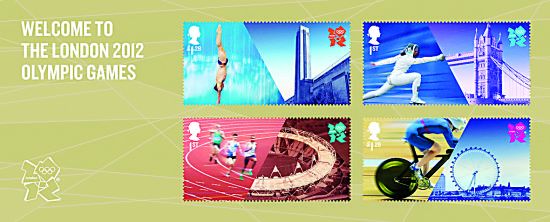 7月27日晚,第30届奥运会在英国伦敦盛大开幕,英国皇家邮政当天发行1套名为“迎接伦敦2012年奥运会”的开幕纪念邮票。
