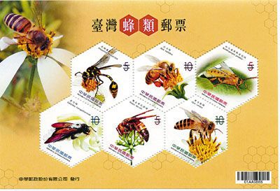 据悉,预定7月12日发行的六角形邮票属于特种邮票,将发行小全张一张,6枚面值共新台币45元。邮票以各种蜂类为主题图案,包括虎蜾蠃、西洋蜂、松毛虫黑点瘤姬蜂、黑竹蜂、双金环虎头蜂及东方蜜蜂等。