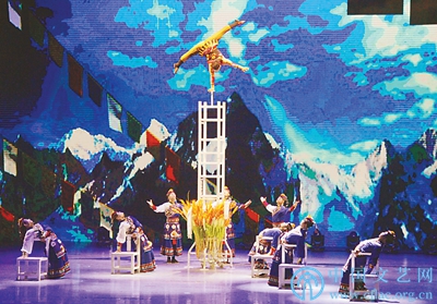 青春意味着梦想,也意味着脚踏实地地从当下丰富新鲜的生活中获取不竭的创作源泉,如人屏互动魔术《冰雪时光》创造性地将冬奥会冰雪项目融入魔术中,身着滑雪服的演员舞台上凌空横起“滑雪”,达到了不可思议的平衡效果,展现出生命的蓬勃;杂技《天路——高椅》中,不断加高的椅子直冲天际,演员饰演的藏族小伙在椅子顶部做出单手劈砖、转圈等高难度动作,徐徐“登天”,紧张刺激;滑稽《岁月》中三个好朋友由打打闹闹到相互扶持,表达了童年、青年、老年不同人生阶段友情的不同涵义,充满温馨与温情。