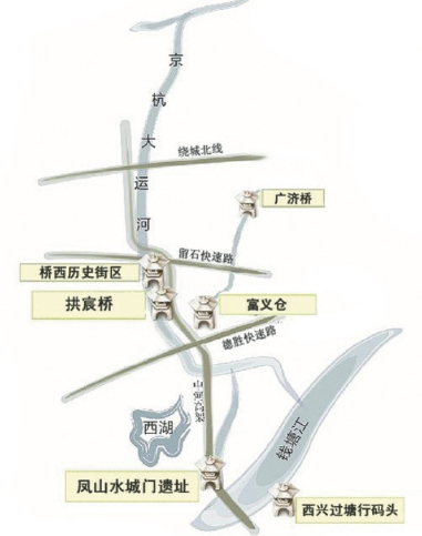 京杭大运河(杭州段)申遗地点示意图