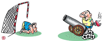 炎炎夏日,世界杯来袭,一时间风云突起。小小一个足球,牵动了一个大大的地球,多少国人激情燃烧,为球痴狂。在漫画家笔下,足球也变得诙谐幽默起来,或变成了子弹,或变成了向日葵,球员球迷都令人啼笑皆非。足球本源于我国古时蹴鞠,惜我国足球队未能上场争夺世界杯,为世界杯欢呼之时,也望中国身影早日现身球场。