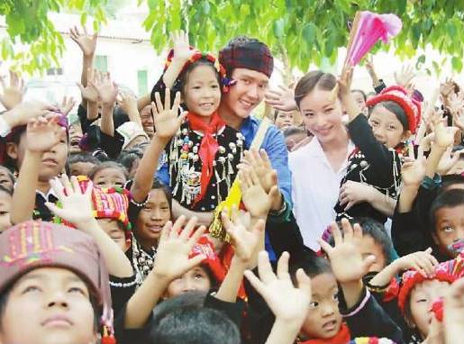 冯绍峰、倪妮与云南山乡学生亲密互动