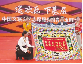 多位著名艺术家为玉树受灾群众奉献了一场精彩的慰问演出。此组图片依次为著名歌唱家霍勇演唱《生死不离》 ,著名滑稽表演艺术家刘全利、刘全和表演滑稽哑剧《兄弟拍电影》 ,藏族组合“尼玛乐队”成员演唱《生命站立成树》 ,玉树当地歌手央金兰泽演唱《心中的绿度母》 ,著名相声表演艺术家冯巩等表演小品《为玉树放歌》 ,央视主持人任鲁豫、张宇表演配乐诗朗诵《嘉那玛尼石上的星空》 ,青年歌手兰天演唱《花儿与少年》 ,著名京剧表演艺术家王蓉蓉、杜鹏演唱京剧《坐宫》选段,著名歌唱家王宏伟演唱《西部放歌》 ,著名相声表演艺术家姜昆、戴志诚表演相声《欢歌笑语》 ,著名歌唱家郑咏、张英席演唱《走向复兴》 ,玉树州向半岛公司官方网站入口查询赠送锦旗表示感谢。
