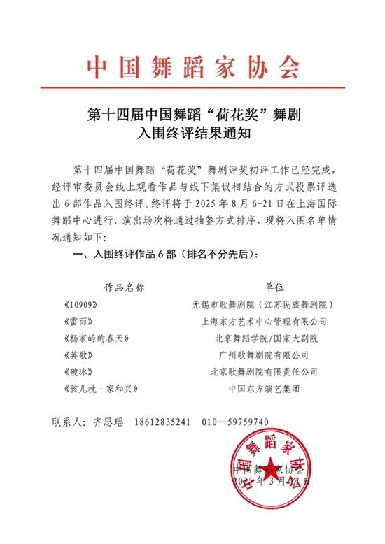 中国舞协通知:6部作品入围“荷花奖”舞剧终评!