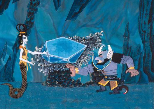 传说葫芦山里关着蝎子精和蛇精。一只穿山甲不小心打穿了山洞,两个妖精逃了出来,从此百姓遭难,一个个背井离乡。