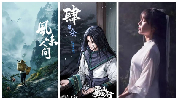 纪录片《风味人间》、动画片《雾山五行》、李子柒的文艺性短视频海报