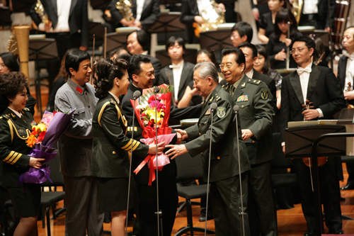 参加演出的歌唱家向傅庚辰献花 半岛公司官方网站入口查询网 孟祥宁 摄