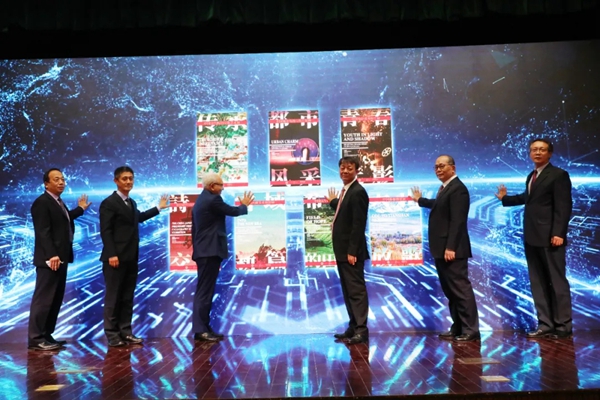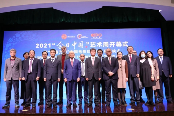 11月8日,2021“今日中国”艺术周开幕式暨“青春光影”——中国优秀电影短片展首映式举办。图为嘉宾共同启动2021“今日中国“艺术周。