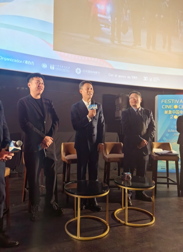 现场互动气氛十分热烈,戴墨分享了文学改编电影的困难与方法,李镇提到《三大队》在中国电影史中的重要地位。张译在交流中感谢大家在这间距离中国两万公里外的放映厅为电影响起了数次掌声,他表示:“人类文明的前进是因为故事,目前为止,故事集大成者最好的表现形式是电影。我们希望把优秀的中国故事讲给秘鲁人民,让我们用故事交朋友,用故事达成未来的合作。”