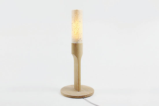 从糊伞的工艺中得到启发,继续向前进化,设计出这盏台灯。应用皮纸和天然浆糊