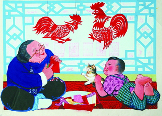 “解放前,日照民间有画抹画的传统,农村里有些会画抹画的人通常在年节作画,并赠送给邻居朋友,贴在门、窗、灶台等处,作用跟民间的门神、灶王爷、财神爷相似。”日照市美术馆副馆长丁万里说,“‘文革’期间,日照组织过几期美术学习班,加强对美术爱好者的培训。到了80年代,有了‘农民的画’这个叫法,慢慢的又简化成了农民画。”多年从事农民画研究和培训工作的丁万里告诉记者,日照农民画以表现农村的原生态、海上民俗为主,蕴含浓厚的乡土气息,颜色鲜艳、画面饱满、造型夸张。“内容上富有乡土气息,表现形式大俗大雅。”