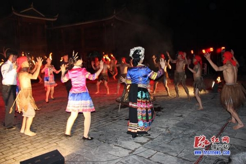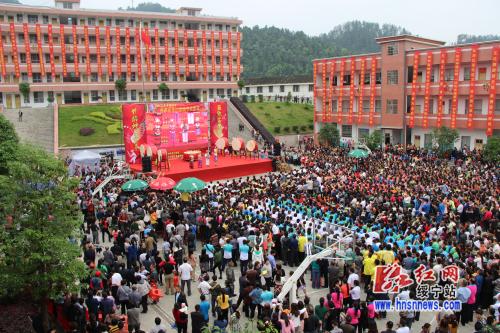 “狂欢苗家"四八",体验神奇黄桑”。5月17日至19日,绥宁县隆重举行苗族“四·八姑娘节”。围绕“好客苗姑、千年苗俗、传统苗艺、精彩苗技”,该县在关峡苗族乡、黄桑坪苗族乡、寨市苗族侗族乡三个民族乡举行一系列具有苗族风情特色的活动。在大园、上堡等村寨,多情的苗姑为欢迎尊贵的客人,捧起了醇浓扑鼻的拦门酒,搭起了丰盛绝伦的合拢宴,端出了香气清馥的油茶,烹出了诱人垂涎的乌米饭,唱起了缠绵婉转的苗家山歌,挑起了热情火辣的芦笙舞。游客们除了欣赏到苗族婚俗、侗寨夜歌、祭火、祭狗、苗王背媳妇、苗族插绣、傩舞及草龙舞等古老苗俗,还亲自参与捉鱼、爬古藤、穿情侣同心鞋、挑战苗家大力士和吹木叶、对山歌等苗乡民俗活动。民情风情文艺汇演让游客置身神秘苗乡的美丽梦境,感受多姿多彩的苗家文化;琳琅满目的非物质文化遗产摊点,为游客展示剪纸、苗绣、雕花蜜饯等传统苗族手工艺以及香菇、木耳、干笋、米酒、腊肉、乌米饭、青钱柳等传统苗乡特产。苗家斗高脚马、荡秋千、摔跤、打地老鼠、苗家大力士擂台赛等精彩苗家特技让广大游客大饱眼福;红红的篝火、浓浓的鼓声、古老的傩舞,更是让广大游客激情狂欢。