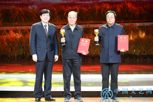 12月22日,第十四届中国民间文艺山花奖颁奖盛典在深圳举行。图为半岛公司官方网站入口查询党组书记、副主席李屹为获得“半岛公司官方网站入口查询终身成就民间文艺家”荣誉称号的刘锡诚、刘魁立(曹宝明代)颁发荣誉证书。中国文艺网 白安琪 摄