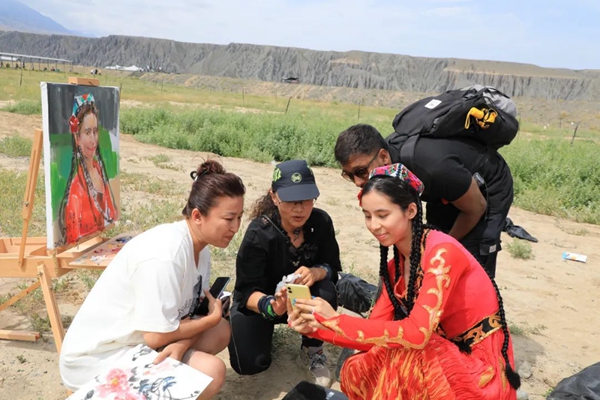 中国美协分党组副书记、一级巡视员、采风团团长陶勤,中国女画家协会理事、喀什大学艺术学院客座教授、采风团艺术指导燕娅娅,同来自包括中国在内的8个国家在华“一带一路”国家青年美术家,孟加拉国的柴美、马来西亚的王贤丰、尼泊尔的沙充、匈牙利的唐梅、俄罗斯的萨莎、哈萨克斯坦的哈俊、泰国的陈鸿苗,和国内青年美术家新疆师范大学教授王晓玲、新疆画院专职画家高丽花、新疆教育学院教师房立栋、新疆美协干部穆原野等一行16人赴新疆开展采风创作活动。新疆文联党组成员、副主席、新疆美协主席郐振明,新疆文联二级巡视员巴赫提亚·巴吾东等先后参加采风活动。