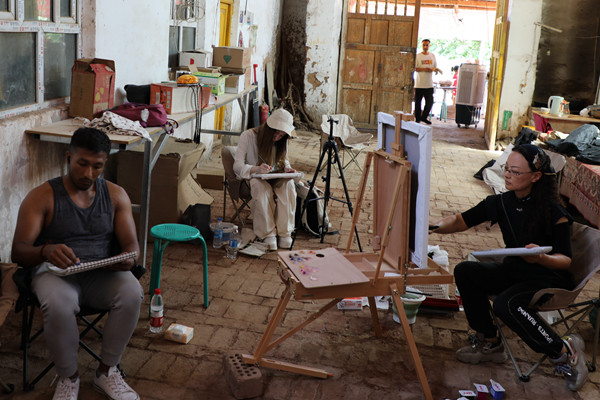 郐振明主席和采风团艺术指导燕娅娅对中外团员给予悉心指导和亲身示范,大家面对不同的写生主题,都是认真观摩学习、相互切磋交流绘画技巧,全身心投入采风创作中。中外团员们的创作表现力也在不断提升,对新疆主题创作理解愈加深入。他们积极思考、努力探索、勇于尝试,力求创作出富有鲜明新疆文化特色,同时融合自身艺术风格的优秀作品,将对新疆的热爱之情诉诸艺术语言之中。