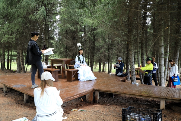 新疆地域辽阔广袤、山川奇幻壮美,采风团走过了火焰山、乌苏古尔图胡杨林、乌苏佛山国家森林公园、独山子大峡谷、克拉玛依魔鬼城等地,体验到了“一山有四季、十里不同天”的气候。戈壁、雪山、森林、草原交相辉映,大美新疆以一种非常有气势的方式展现在青年美术家面前。大家在感受大自然鬼斧神工的兴奋与惊叹之余,纷纷用眼、用心、用笔、用情将新疆风情留驻心底,真真切切地体会到中华“大好河山”所蕴含的深沉而磅礴的伟力。