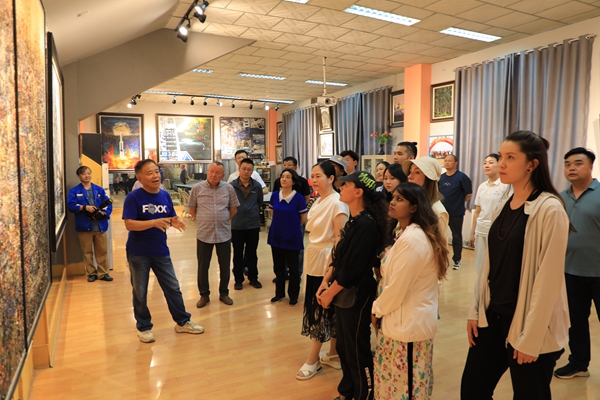 新疆文联党组成员、副主席、新疆美协主席郐振明与中外青年美术家进行创作交流