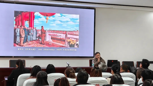 为坚持以美育人、以文化人,更好弘扬中华美育精神,3月11日上午,首都师范大学美术学院教授、博士生导师张鹏作了题为《20世纪以来的主题性美术经典作品解读》的讲座,为甘泉县的文艺工作者组织了一场干货满满的美育大讲堂。听讲座的学员大多数为学校美术老师,他们纷纷表示将认真思考新时代下美术教育、美育教育的发展方向,培养出德智体美劳全面发展的社会主义建设者和接班人。