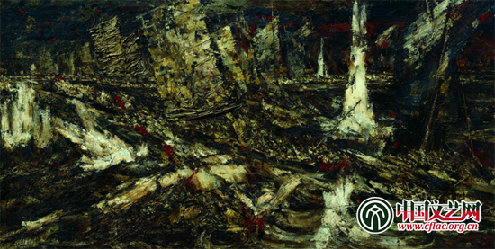 历时5年完成的国家重大历史题材美术创作工程作品展自2009年9月22日在中国美术馆开展以来,迅速在社会各界尤其是文化界引起轰动,被誉为“既给人以心灵的震撼,也给人带来艺术的享受,是以美术作品表现的‘复兴之路’。”组织之细致、投入之巨大为历次主题创作之最,创作力量之强、反映主题之广为新中国美术史之大观,必然也注定使这次新中国成立以来最大规模的美术主题创作载入史册。而在102件“大题材、大画面、大制作、大手笔”宏篇巨著中,我们不难发现,由陈树东、李翔创作的以气氛浓烈气势豪纵为特色的、以“群像塑造”为特征独特体格的史诗般巨幅油画《百万雄师过大江》,强烈的视感、诗意的表现、鲜明的风格在战争题材的油画作品中显得异常突出,体现了现实主义多样表现和个性化表现的可能性,是新一轮历史画新思维、新语言的时代印记。同时,该画作带给人们的对久远战争的反思、对艺术创新的思考都远远超出了一件美术作品的本身,呈现了新时代美术宏大叙事的又一精品力作。“在2007年`国家重大历史题材美术创作工程'中,他的选题是`百万雄师过大江'。如何在新的时代找到表现这一题材的切入点,陈树东运用了宏阔的尺幅,以展现千帆竞发的激烈场景,更用了浓郁的色彩,特别是黑与红、黑与白碰触相间的视觉旋律,构成强烈的形式张力,使这一题材有了新款的当代表达。”中国美术家协会副主席、中央美术学院院长、中国美术馆原馆长范迪安撰文指出,“在当代油画家群体中,陈树东的风格显然是独树一帜的,在雄浑朴茂的风格语言上,他能把控大场景的空间,也能作小幅细微的表述,这说明他在美学形式上已经形成自己的观念,这种观念在他那里是长期酿化的自然结果。而把他的艺术放在中国油画的当代图景中,可以看到他为中国油画的当代形态做出了贡献。”