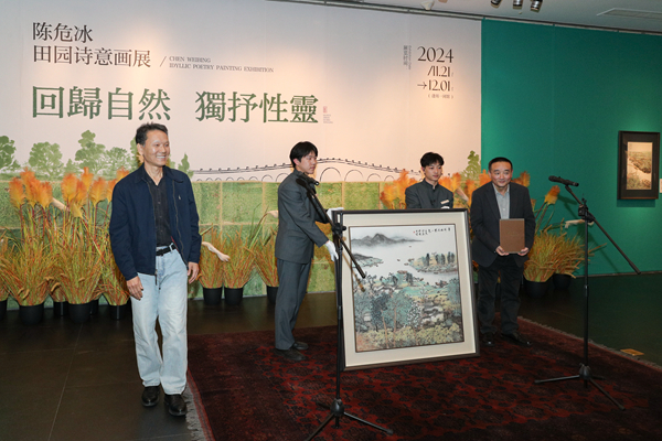 11月22日,由中国画学会学术支持,北京画院、中国美术家协会中国重彩画研究会、江苏省美术家协会、苏州市文联、民进苏州市委员会主办的“回归自然 独抒性灵——陈危冰田园诗意画展”开幕式在北京画院美术馆举行。画家陈危冰多年来一直致力于田园山水画的创作,通过对自然、社会、历史以及人与自然的深刻感知和诠释,创作出了一系列富有诗意的田园山水画佳作。他的作品不仅引起了当代中国画坛的广泛关注,也为当代中国山水画拓展了新的题材和表现空间。