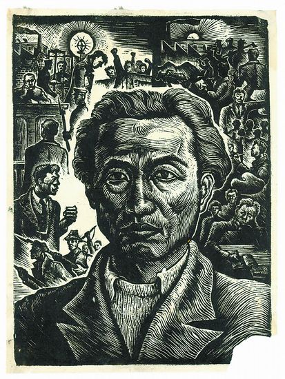 细心的人可能会注意到,本次展览以“发现”为题,意在通过展览重新审视我们曾经走过的半个多世纪中国美术历程。这种发现,不仅仅是寻找到一批江丰未曾发表的美术作品,或是找到他当年提议创办中央工艺美院的信件,以及他一生坚持的文艺与生活、社会的关系那么简单。更重要的是,展览为我们提供了一个可以研究的文本,其中包罗万象,囊括了一个延安鲁艺人对待世界美术发展的态度(江丰曾写过和编辑多篇涉及意大利文艺复兴时期美术,意、英、法、美现代木刻和印象派画史的文章),涵盖一个美术工作领导者对“普及美术”所做出的探索(不是要迎合大众,而是以创新的艺术技法和民众看得懂的形式提高全民的审美认知),诠释了一个中国共产党人所具有的党性原则与社会责任感(被划为右派后还不忘美术事业,对有为美术青年发现一个扶持一个)。