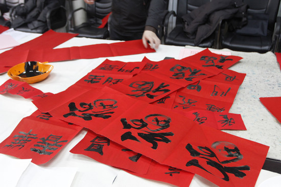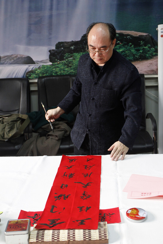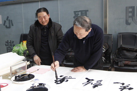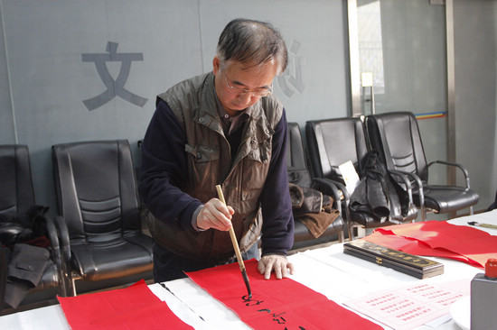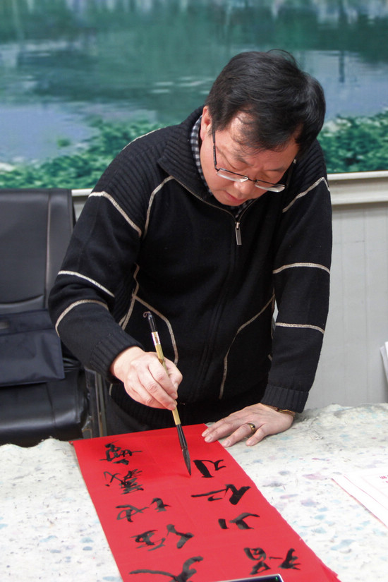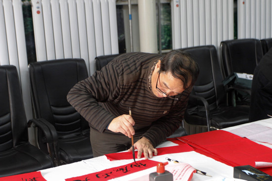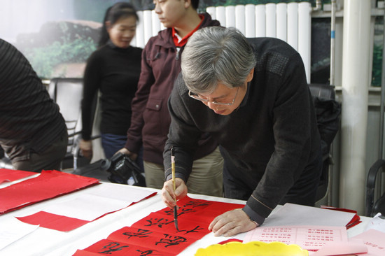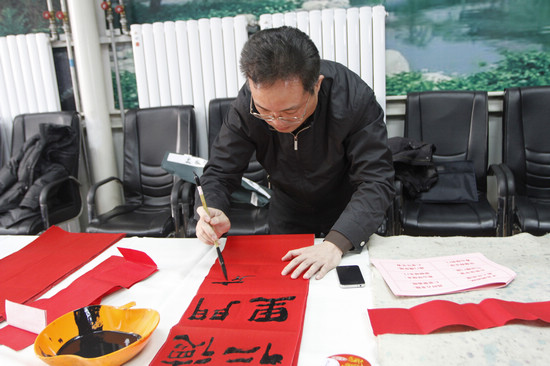 “平安即是家门福,孝友可为子弟风。”对于经历过北京“7·21”特大暴雨、正处于经济社会转型期的北京房山洪寺村来说,这副春联有着特别的意义。1月22日,由中直机关书画协会和协会团体会员单位广电总局书画协会的张瑞祥、陈树谦、孙平、赵辉、金玉杰、王书科、梁岳、边传久、关来顺等书法家组成的送文化下乡小分队,在中直机关书画协会主席武春河、中直机关工委群工部副部长舒家鑫的带领下,到北京市房山区城关镇开展送文化下乡活动,赠送部分图书,并为村民书写春联200余副。