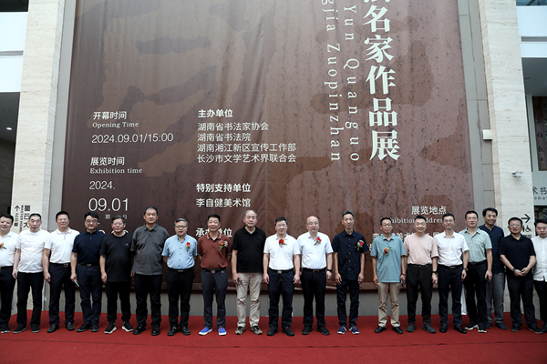 湖南省文联党组书记、副主席提名人选(主持日常工作)乐奕,湖南省文联党组成员、副主席、中国国家画院研究员、湖南省书协副主席倪文华,湖南省文联主席团委员、省文艺评论家协会主席陈善君,浙江省书协名誉主席、浙江省文史研究馆馆员鲍贤伦,中国书法家协会理事、西泠印社理事高庆春,湖南省书协副主席、秘书长胡紫桂,长沙市文联党组书记、主席舒全球,湖南湘江新区宣传工作部部长、岳麓区委常委、宣传部部长刘雄辉,湖南省美协副主席、省画院院长石纲,湖南省文联网络文艺发展中心主任蒋蒲英,湖南省企(事)业文联副主席兼秘书长赵涛,湖南省艺术研究院党总支书记、院长邹清华,湖南省艺术研究院副院长谷玮,以及湖南省书协、省美协、湖南美术馆、省画院、长沙市文联等相关负责人参加开幕仪式。开幕式由倪文华主持。