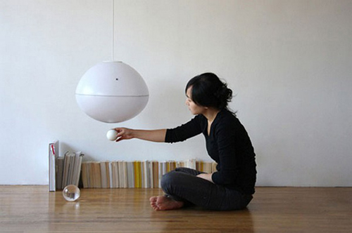 要打开灯,只需要将小球从灯罩的上方移至下方即可开启灯泡,更令人惊讶的一点是小球开关可以在灯罩的下方悬浮这些,就想图片中的那样,如果要关闭灯泡,只要将小球移到上方就可以了。