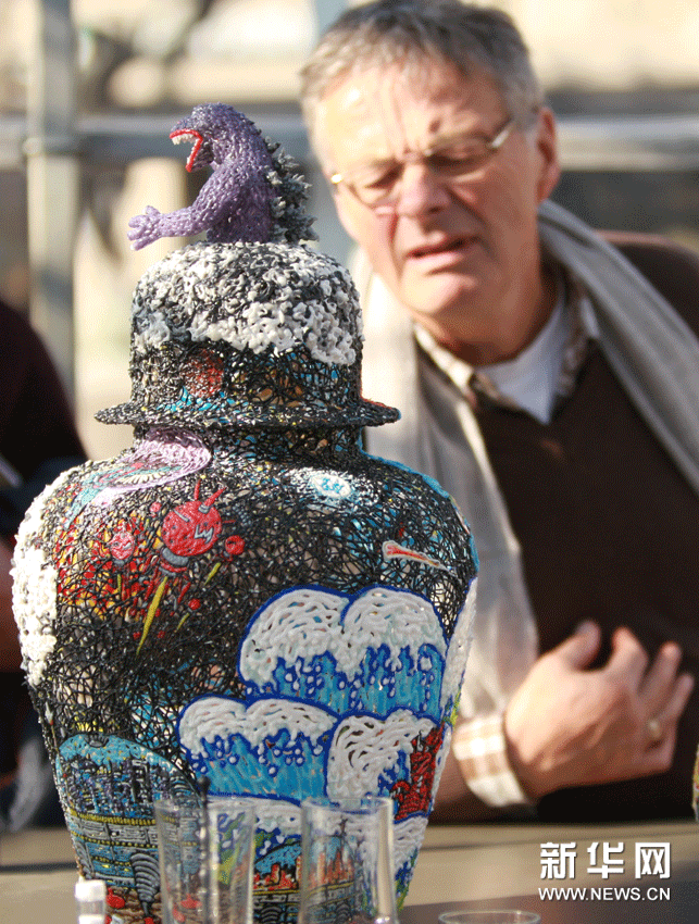 (1)10月24日,在荷兰埃因霍温举行的荷兰设计周上,一名游客欣赏展出的花瓶。