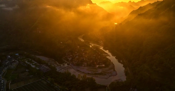 沐浴在晨光中的吉首市矮寨镇坪朗村 付锐 摄