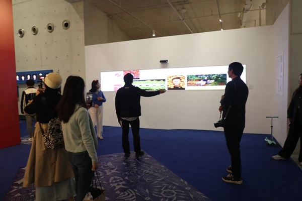 整个展览湘西风韵浓郁,从地板色彩到展墙色块巧用苗族蓝印花布为底色。宋代风俗画风格的长卷、以富有民族特色的苗绣纹饰为边框的专题作品,中式审美与乡村气息珠联璧合,一个个镜头、一张张笑脸更是让人直观地感受到扑面而来的幸福感获得感。观众观看后表示很受震撼,称赞这些作品“质朴”“真实”“动人”“ 非常用心,让人感动”。