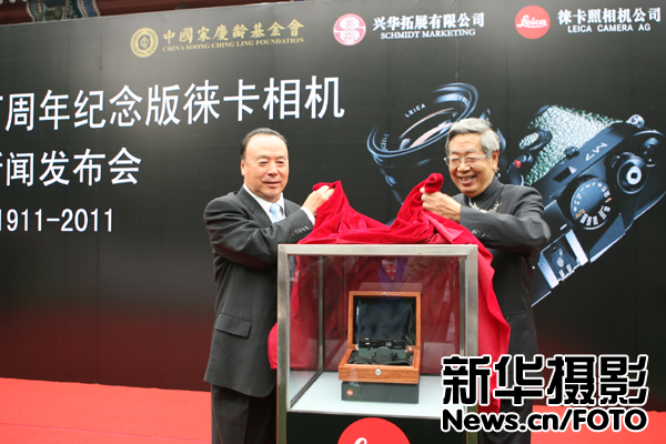 “辛亥革命一百周年”纪念版徕卡相机新闻发布会今天上午在北京宋庆龄故居举行。全国政协副主席白立忱、第十届全国人大副委员长许嘉璐出席并为该纪念版相机揭幕。全国政协常委、港澳台侨委员会副主任杨崇汇,中央统战部副部长黄跃金,中国致公党中央副主席杨邦杰、严以新,中国宋庆龄基金会党组书记、常务副主席常荣军,中国宋庆龄基金会副主席吉佩定、杨绍明,中国摄影家协会分党组书记、副主席兼秘书长李前光,徕卡照相机公司亚太区董事经理索尼尔,兴华拓展有限公司总裁陈伟业等领导也出席了此次发布会,并为纪念版相机揭幕。