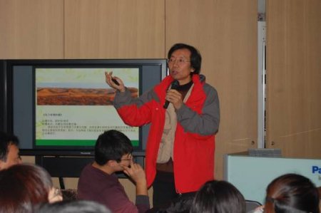 整个讲座过程持续了三个小时,内容充实而精彩。在活动现场,周海翔先生和大家讲述了他在拍摄湿地生态摄影照片和进行湿地保护过程中的宝贵经历,以及当前湿地生态所面临的严峻挑战。美丽而高贵的白天鹅沦为了“垃圾鹅”、全球濒危珍稀鸟类黑脸琵鹭正在艰难的生存、由于过渡捕捞和开采而成群死去的海洋生物、满目疮痍的地表、日渐消失的湿地……当这些细致生动而又触目惊心的照片一张张呈现出来时,现场的人们都陷入了无声的思考之中。周海翔先生的亲身经历与照片相结合的讲解,使大家对湿地生态有了更直观的理解和认知。