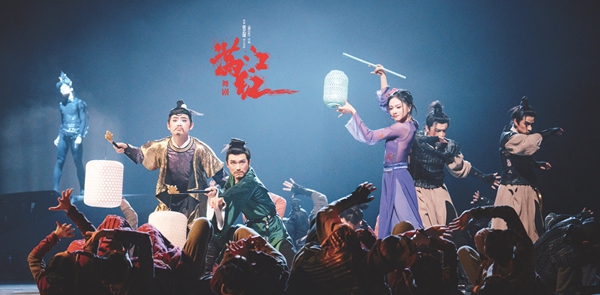 “这段群舞中,我们把课堂上的综合性表演组合‘满江红’进一步发展,将其典型动作语言与孙均这一人物的主题动作相融合,反复营造一种正义归来与顶天立地之感,彰显诗词给予的‘仰天长啸,壮怀激烈’的豪情和力量。正如全剧动作语汇是基于古典的气韵、精神甚至呼吸的自由舞蹈表达,我也会尽可能依循古典舞‘三圆’身体文化逻辑来完成舞蹈编创,实现古典舞的当代表达。”现代舞出身的舞剧总导演张驰说。