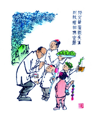 持艾簪蒲额头王 彩线缠粽保安康