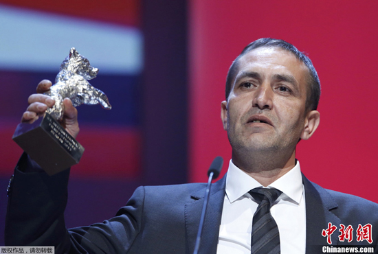 北京时间2012年2月17日凌晨(柏林当地时间2月16日晚),第63届柏林国际电影节闭幕式举行。罗马尼亚电影《孩童姿势》获最佳影片金熊奖,拉奇夫与帕琳娜亚分获帝后。图为拉奇夫-穆齐齐凭借《采铁人的渺生一页》获得最佳男演员奖。