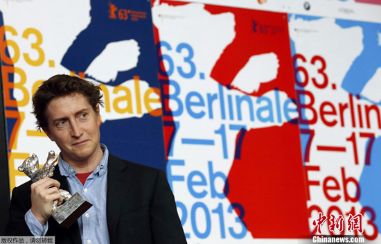 北京时间2012年2月17日凌晨(柏林当地时间2月16日晚),第63届柏林国际电影节闭幕式举行。罗马尼亚电影《孩童姿势》获最佳影片金熊奖,拉奇夫与帕琳娜亚分获帝后。图为大卫-戈登-格林凭借《雪崩王子》荣获最佳导演奖。