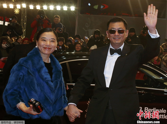 北京时间2012年2月17日凌晨(柏林当地时间2月16日晚),第63届柏林国际电影节闭幕式举行。罗马尼亚电影《孩童姿势》获最佳影片金熊奖,拉奇夫与帕琳娜亚分获帝后。图为王家卫携夫人亮相。