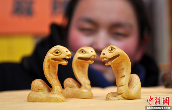 根雕工艺“蛇”很抢眼。郝群英 摄